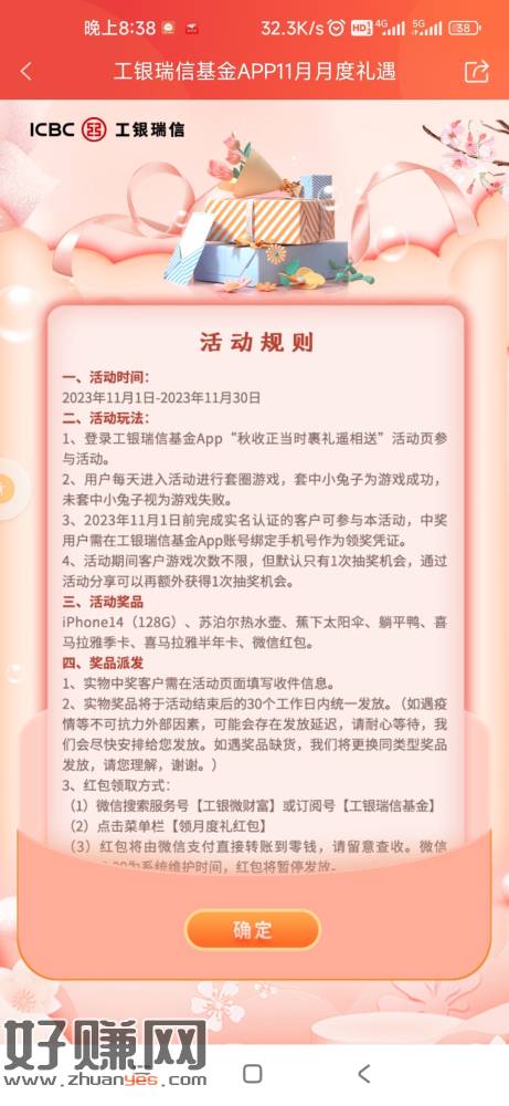 工银瑞信app活动专区,第一个活动,t中小兔子有可抽奖,分享再加一次,没做过的可以去试一下