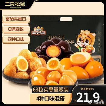 三只松鼠 鹌鹑蛋混合装 ,19.9元包邮,约63颗