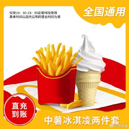 7.5亓,麦当劳中份薯条+冰淇淋两件套