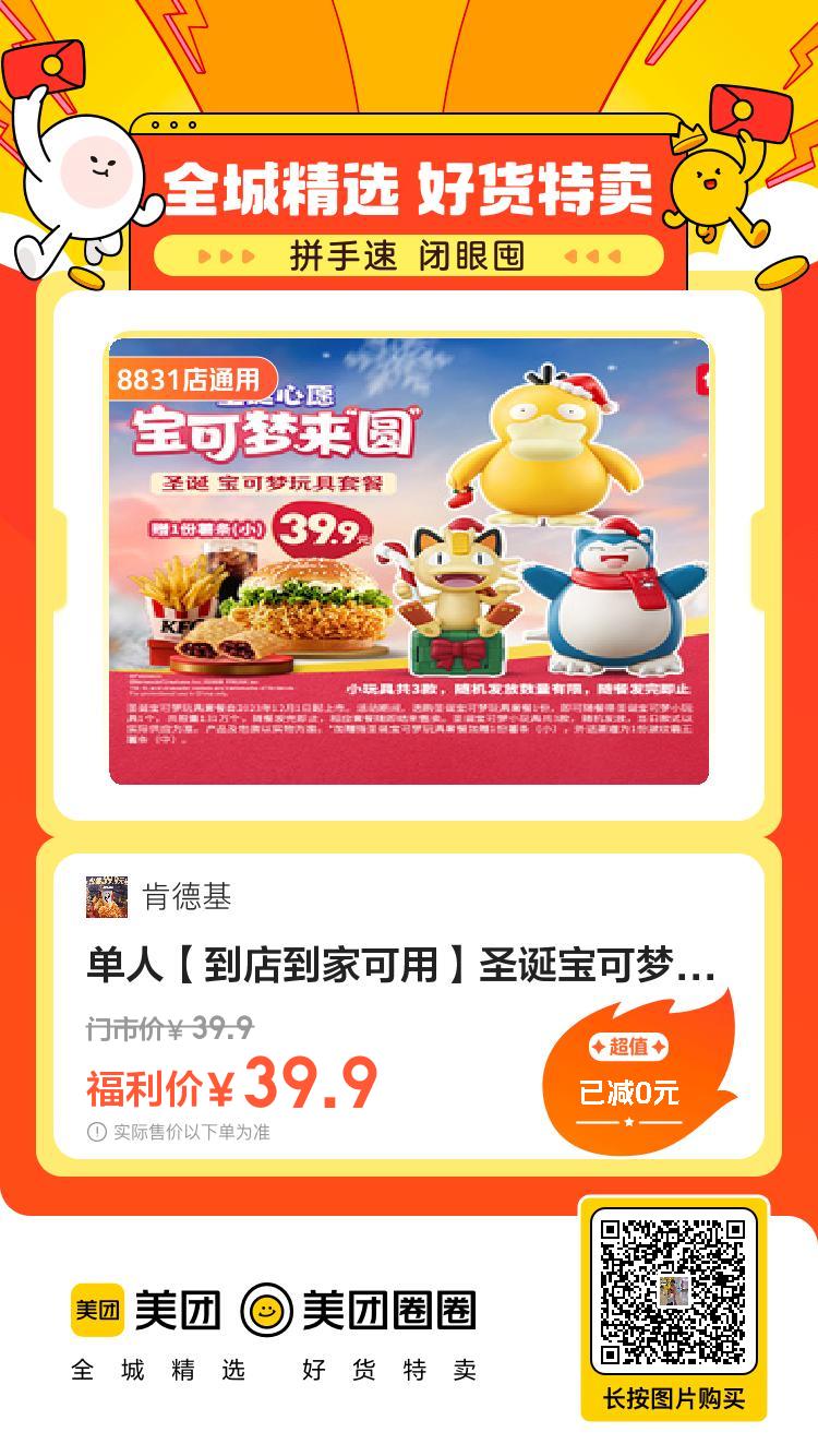 39.9,肯德基|单人【到店到家可用】圣诞宝可梦玩具套餐