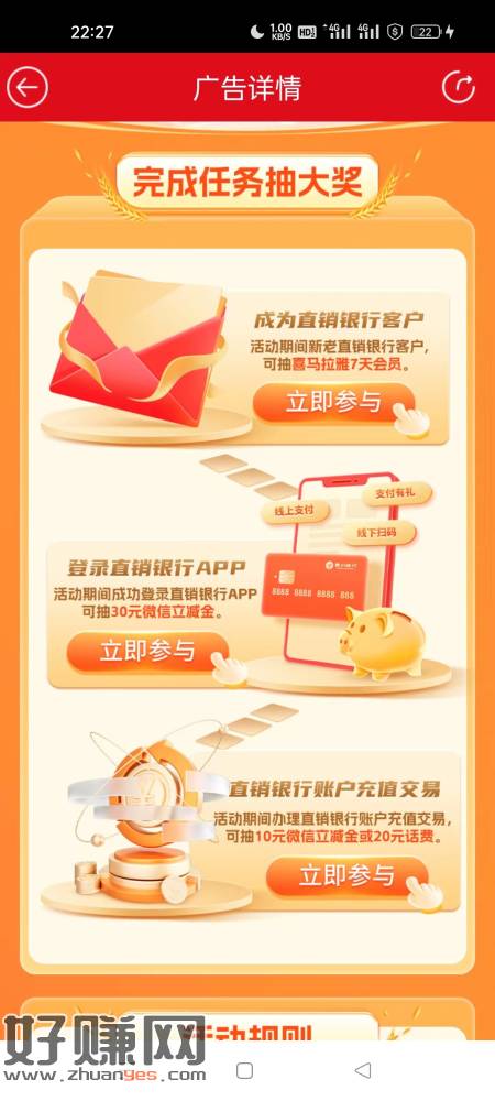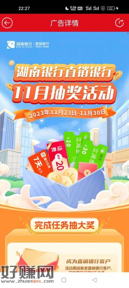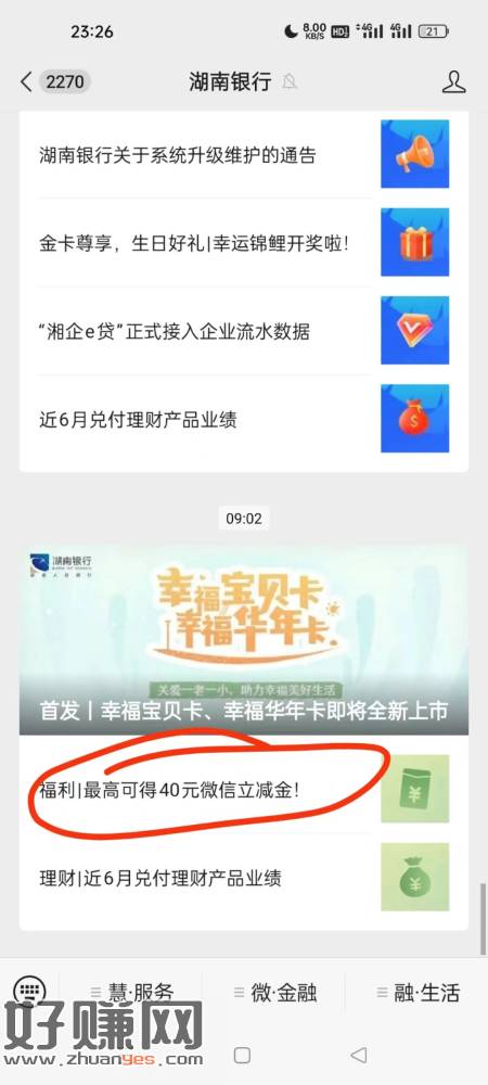 湖南银行直销银行公众号app去抽奖 他立减金 得有湖南直销银
