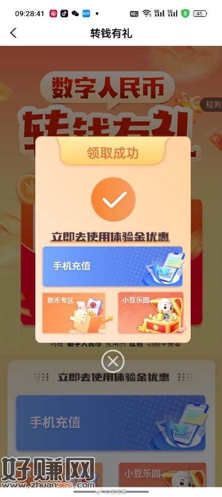 农行搜数字人民币,转钱到任意钱包,完成后下面抽奖