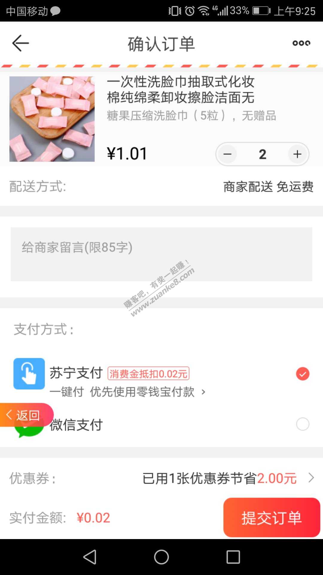 下单,选1.01那个,拍2件: