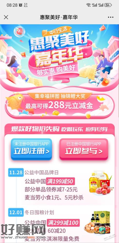 中行集拼图,抽微信立减金