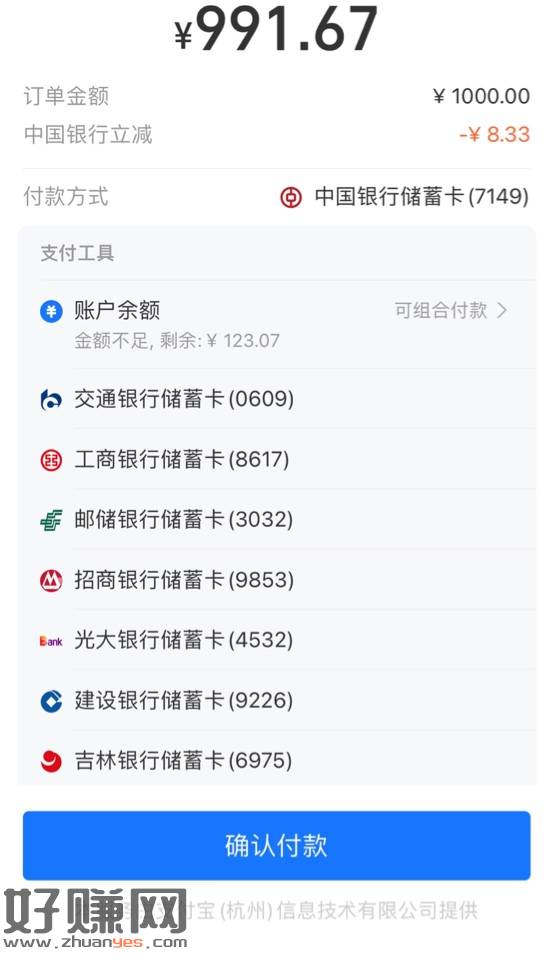 支付宝中国银行转小号1000-8 我河南二类卡