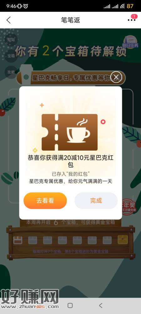 交行信用卡消费的可以试试“买单吧”APP抽奖,买30星巴克代金券可以3+润
