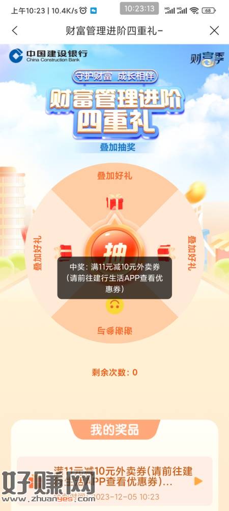 建行11-10外卖券 上个月做过这个活动的 重新进点左下抽奖