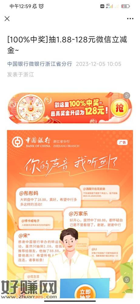 中国银行浙江分行必中