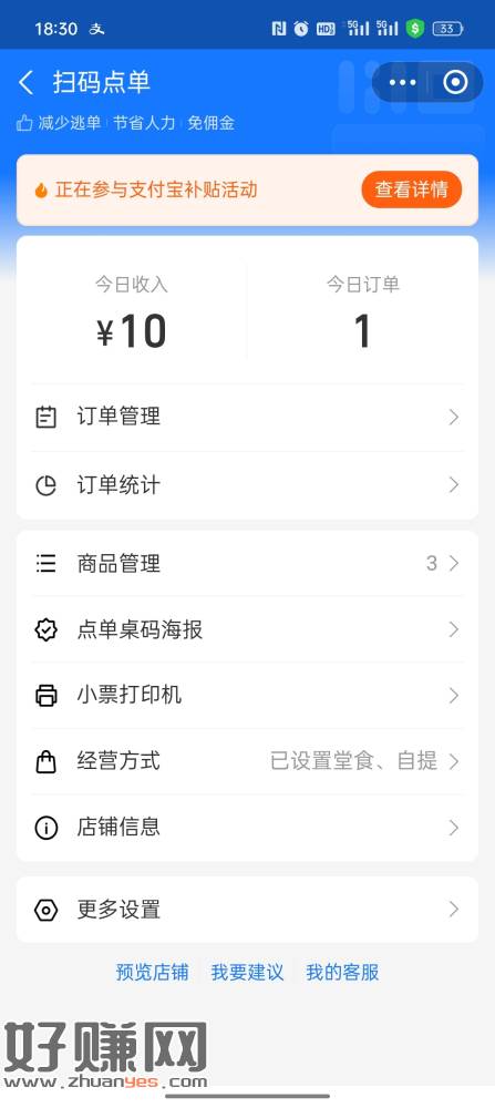 zfb有商家码的,打开商家服务,扫码点单进去手动打开补贴活动