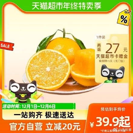 秭归脐橙3斤装,88会员37.9,返27元猫超卡