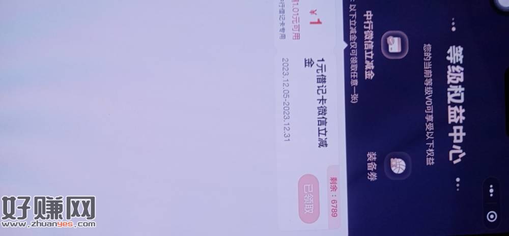 【中行直接领取1元微信立减金】新一期!进入#小程序:中银运动+ ->能量驿站健步兑好礼->右上角“等级权益”->直接领取1元微信立减金