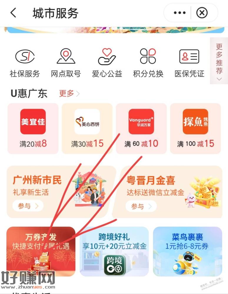 入口二:中国银行app,下方-生活,城市服务,万券齐发