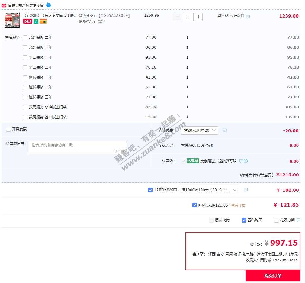 天猫东芝机械硬盘好价4T400元,企业盘8t的999元