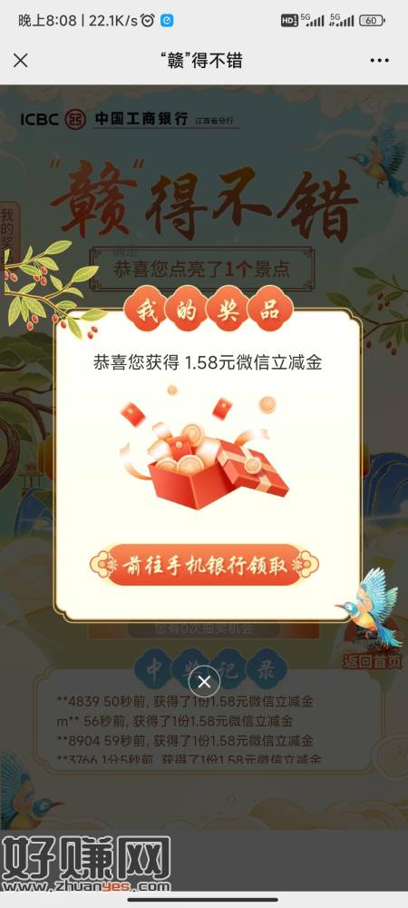 江西工行,最少3立减金,自测