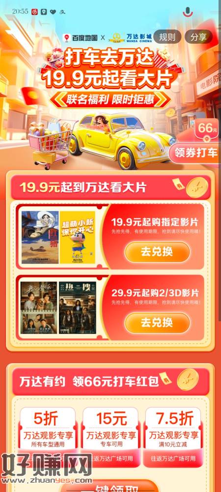 百度地图APP搜索打车去万达,领取29.9的