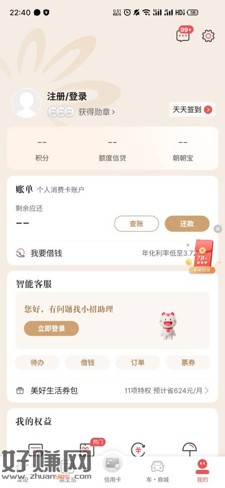 招行xyk 78元或42元毛
