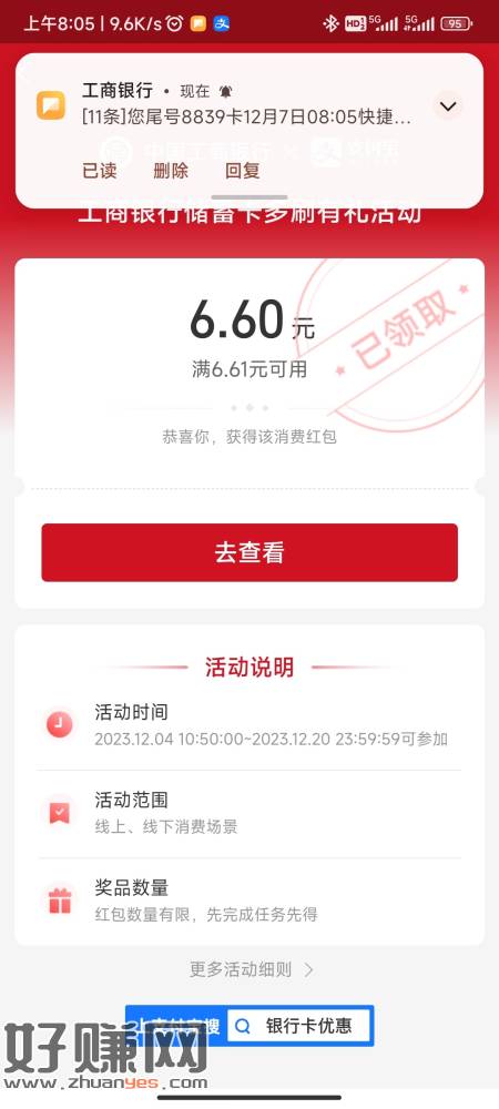 工商银行刷3笔5元以上订单秒到6.66