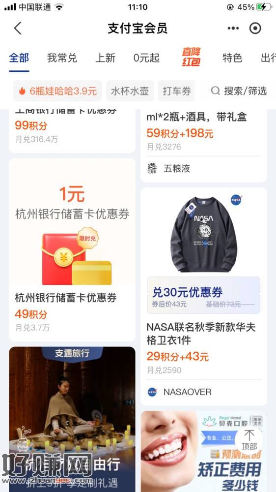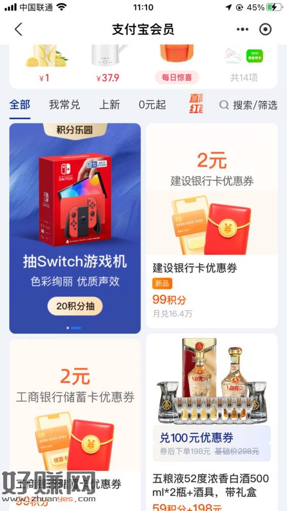 支付宝我的 支付宝会员 工商2元建设2元杭州1元