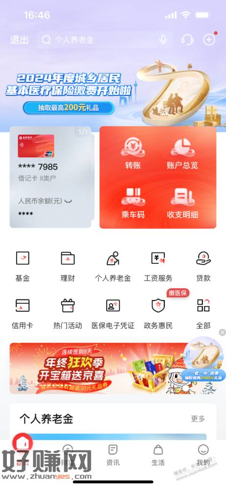 北京银行APP首页滚动栏,年终狂欢节,签到开宝箱抽奖