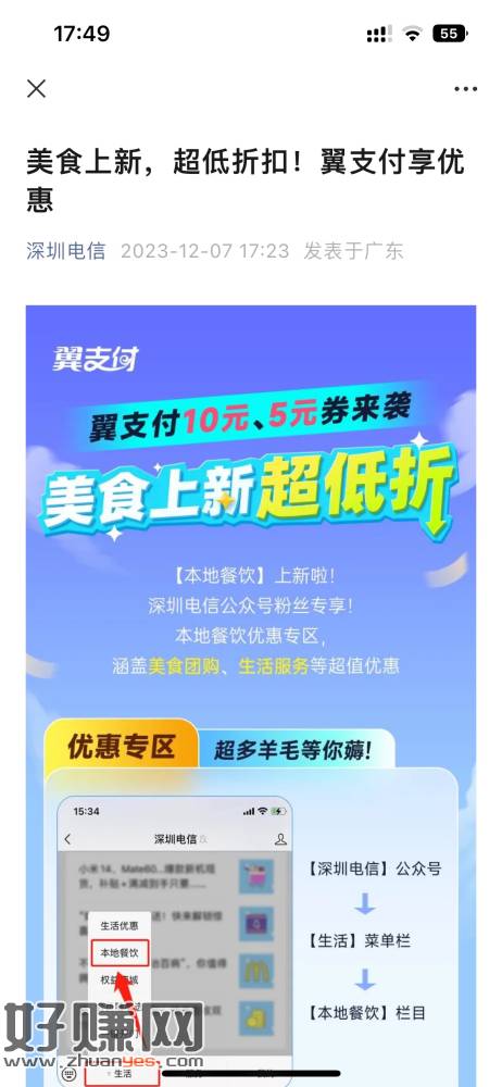 公众号深圳电信美食抽奖