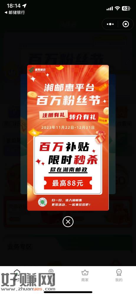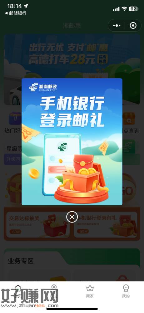 改位置到湖南随便哪个市,点湘邮惠跳转小程序,X掉图一点底下图二去抽奖 不用只需要VX定位湖南,ljj限制湖南邮储卡,没卡的可以出给别人,多号抽 记得抽了28元才兑换一个实名只能兑换一个