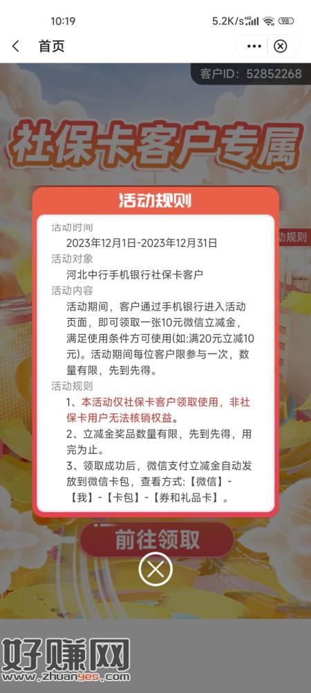 河北中行社保卡领20减10立减金,限社保卡可用