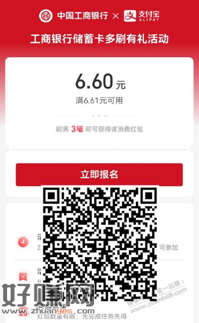 吱付葆扫码 工行刷3次5元以上,领6.6红苞
