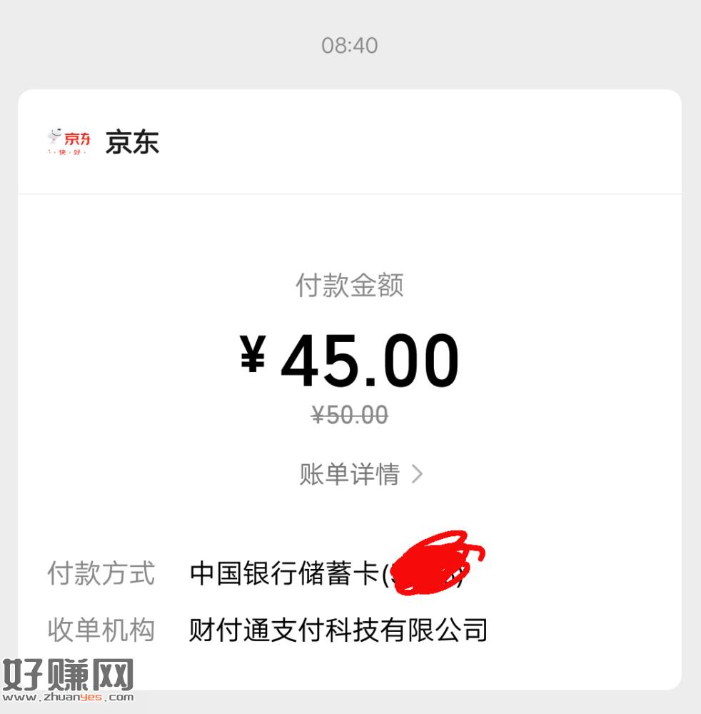 京东50e卡选微信中行支付50-5,不清楚是否地区,自测,有的请关注点赞支持下!