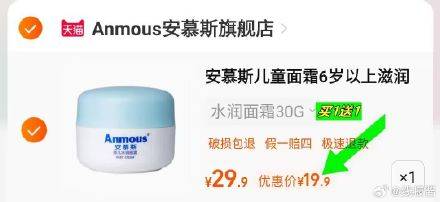 19.9亓[ 安慕斯 ] ,儿童保湿面霜共30g*2罐
