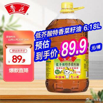 89.9,鲁花 低芥酸特香菜籽油 6.18L