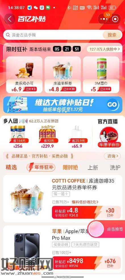 支付宝 淘宝闪购 黑钻领18免单奶茶卡