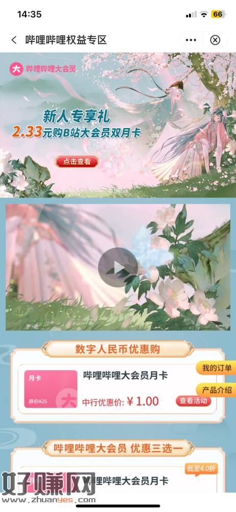 中银生活1元B站会员没毕业的去毕业,要有数字人民币,自己去玖玖代充出9元