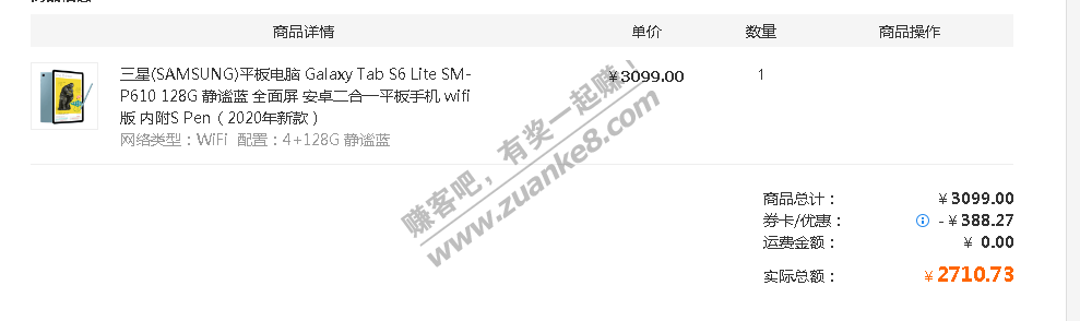 三星平板电脑 Galaxy Tab S6 Lite 10.4英寸