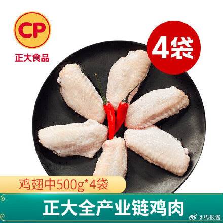 先领129-30补贴券 ,正大 鸡翅中500g*4袋