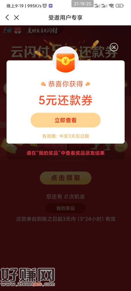 ysf 100-5还款券 试试