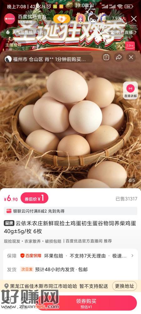 百度直播间一元6个鸡蛋【【百度直播】今日限时福利1元到手4瓶可乐或6枚鸡蛋,还有各种福利品,尽在百度优选官方直播间!】