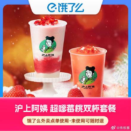 饿了么,21.8亓, ,沪上阿姨超嗲莓桃双杯套餐