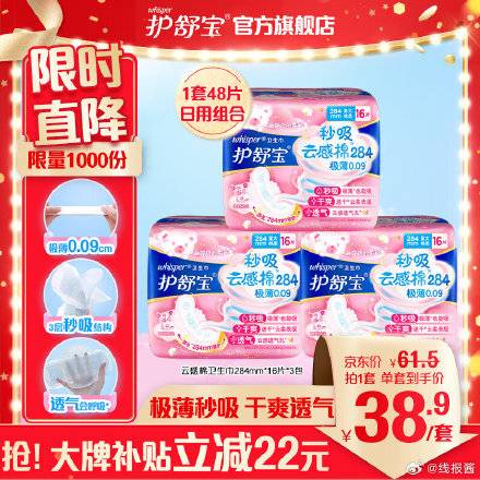 【48元包邮】液体卫生巾240*10+270*10+裤L码*4条