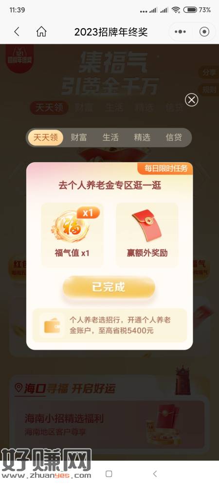 招商,招牌年终奖活动,右下角图标进入,或者搜索进入,天天领完