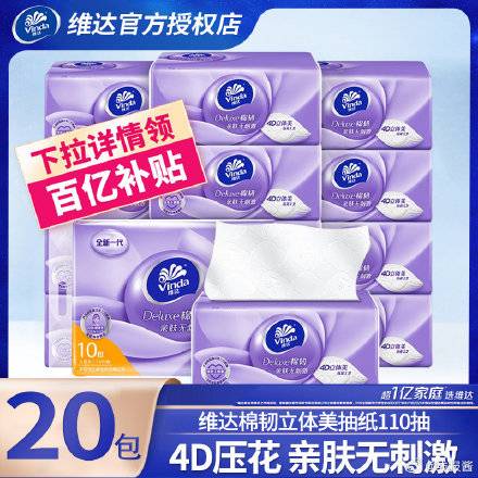 百亿补贴,14.9亓 ,维达棉韧立体抽纸110抽*10包
