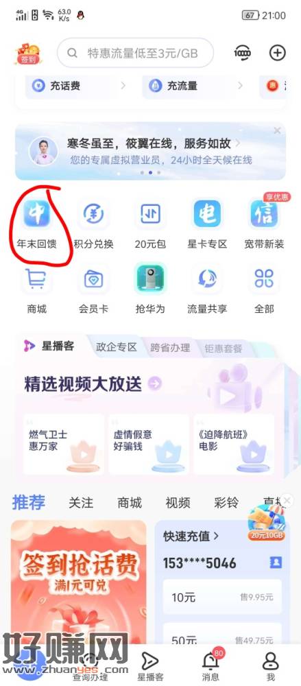 没有的浏览器扫码跳转电信 APP 右上角第二个答题的