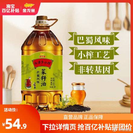 百亿补贴,54.9亓 ,金龙鱼外婆乡小榨菜籽油5L