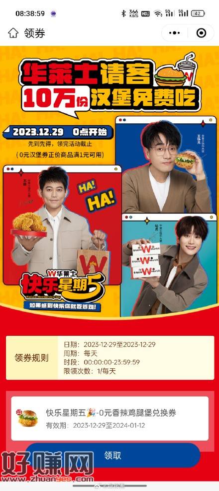 微博点发现,如有有免单汉堡,要是看不见广告,多进几次