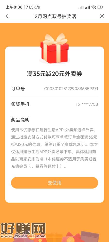 建行生活 取号抽奖