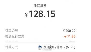 支付宝缴费200,试试交通银行信用卡是否有立减