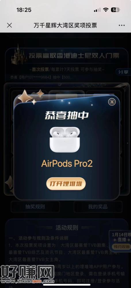 微信打开活动地址,随便投票,抽苹果蓝牙耳机,非必中,不中换号抽