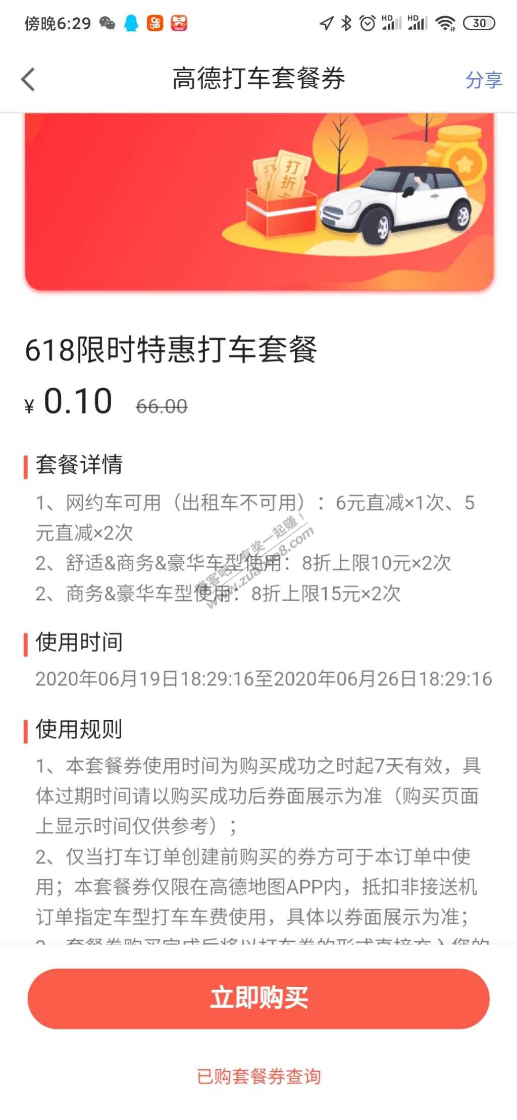 这是高德打车618限时特惠活动 可在活动页面0.1元购买