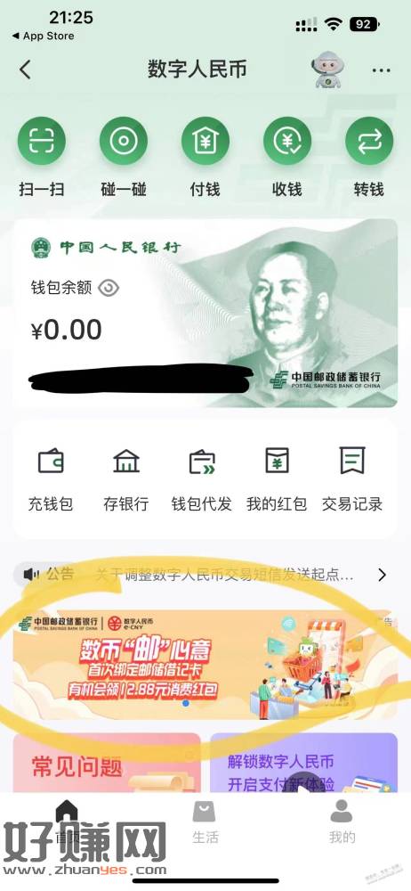 邮储APP-首页-数字人民币-滑动栏数币邮心意进去数字钱包绑定邮储卡得12.88红包