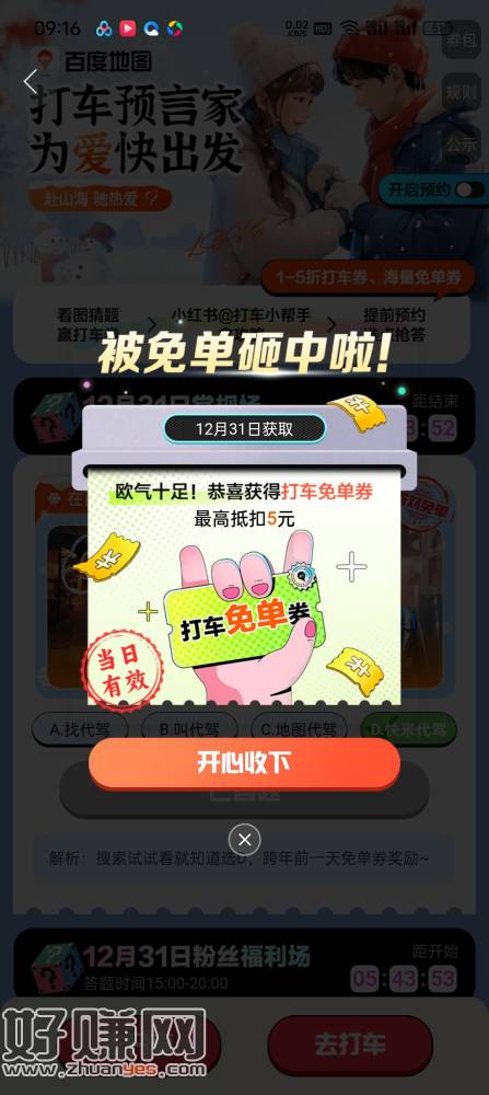 自测!百度地图 输入 打车预言家 分享 然后答题 选择D
