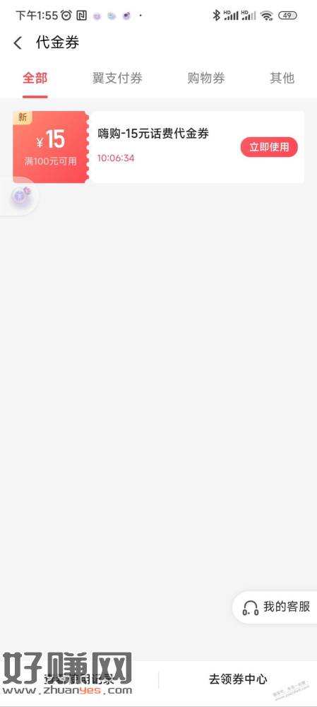 快,翼支付好几个号都送了100-15话费券,大家快去看看,今天有效期!!!